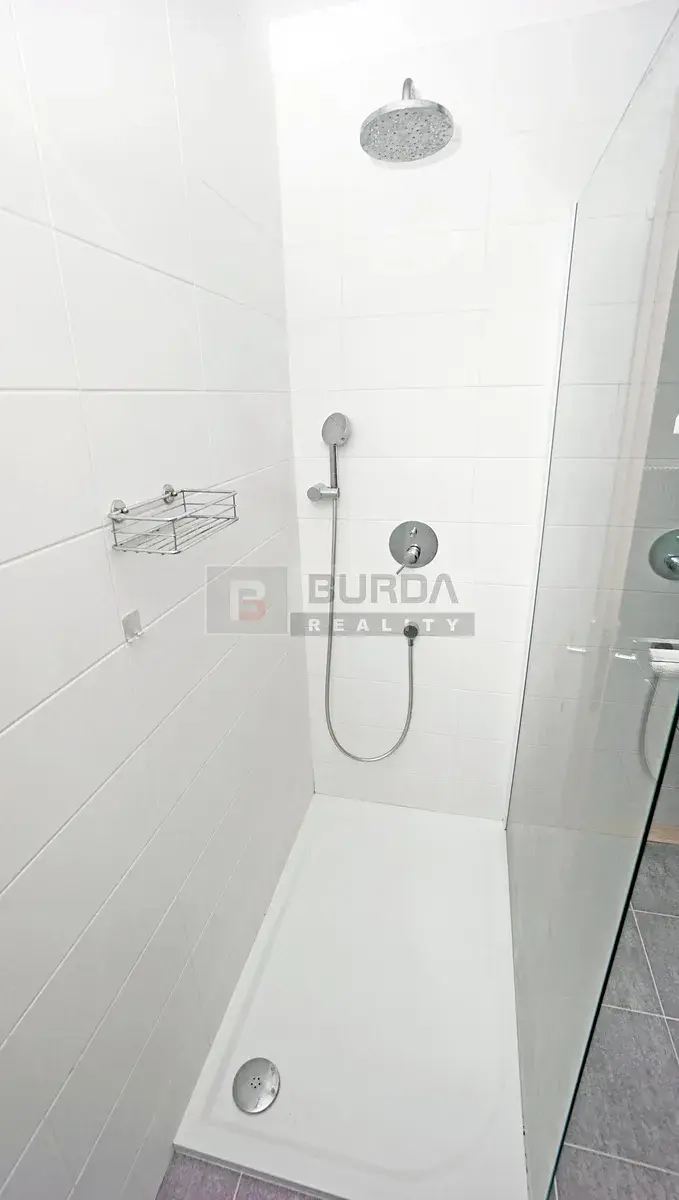V koupelně v 2NP je sprchový kout, umyvadlo s baterií Jika, WC, bidet zn. Jika, vestavěná skříň a topný žebřík.