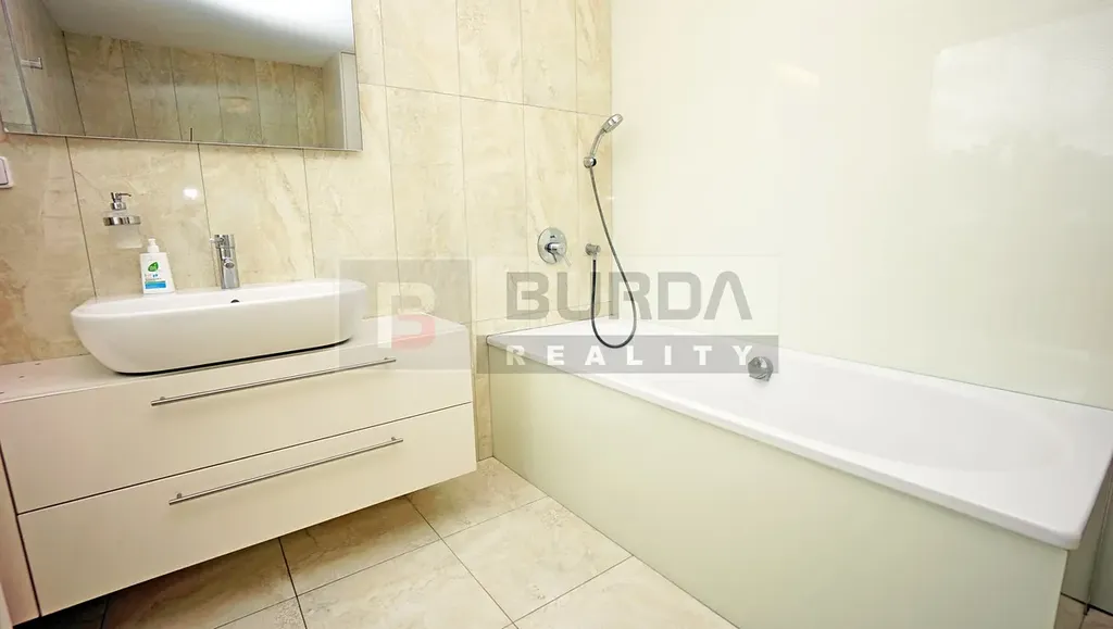 V koupelně v 1NP je kvalitní litinová smaltovaná vana zn. Kaldewei, umyvadlo Kaldewei s baterií Grohe, WC Geberit se splachováním Aquaclean, bidet, radiátor a obklad nad vanou lacobel.