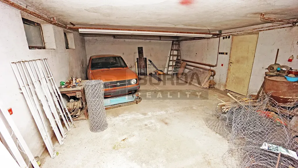 V domě je garáž na 2 auta a další 2 auta mohou parkovat vedle domu na parcele a také před domem v ulici.