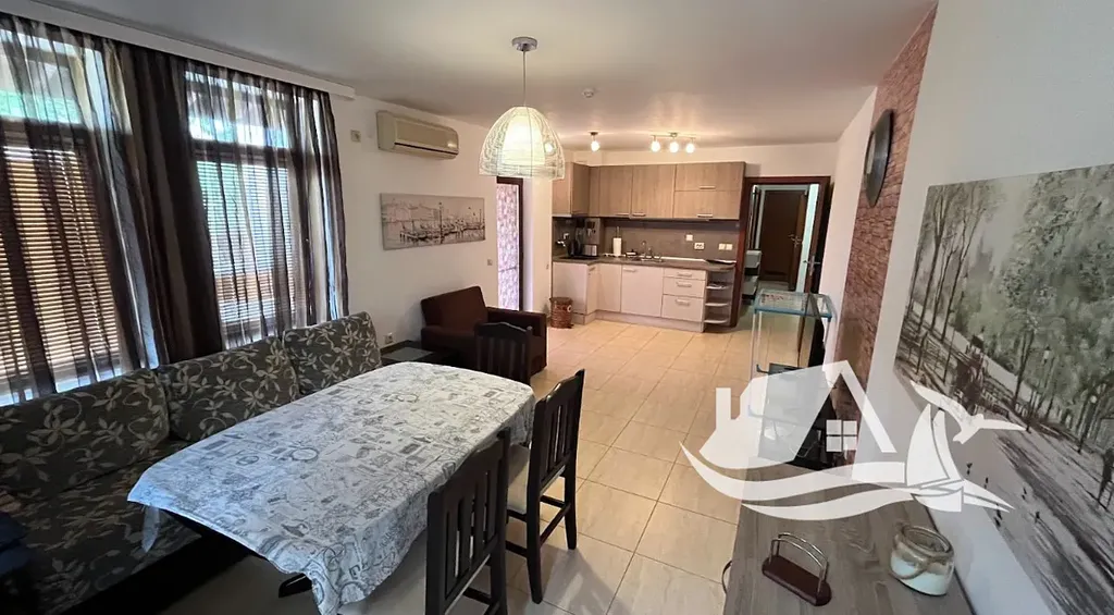 Interiér apartmánu je světlý, vzdušný a praktický. Obývací pokoj s kuchyňským koutem tvoří přirozené srdce bytu - místo pro společné chvíle, každodenní život i klidné večery. Dvě samostatné ložnice poskytují dostatek soukromí pro rodinu i hosty. Koupelna s toaletou. Velkorysá terasa orientovaná do zeleně se stává přirozeným prodloužením obytného prostoru - ideální pro ranní kávu, čtení nebo večerní posezení po dni stráveném u moře. Apartmán je vhodný jak pro osobní užívání, tak jako nemovitost s velmi dobrým potenciálem krátkodobého i dlouhodobého pronájmu.