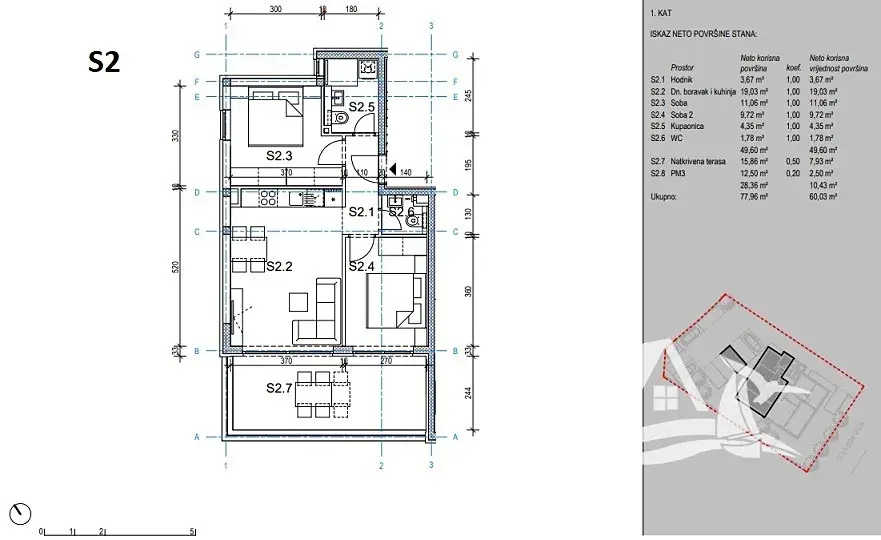 Nabízíme k prodeji třípokojový byt (S2) o rozloze 60,03 m², který se nachází v prvním patře novostavby v oblíbené lokalitě Novalja. Byt nabízí moderní dispozici a jedinečný panoramatický výhled na moře.