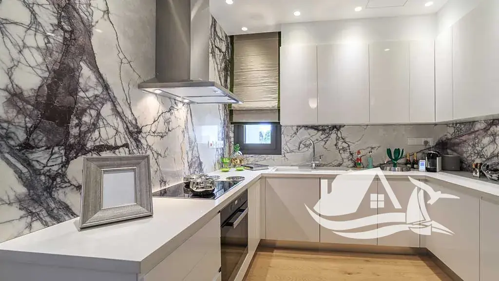 Luxusní provedení: mramorové koupelny, dřevěné podlahy, evropská sanita a kuchyně