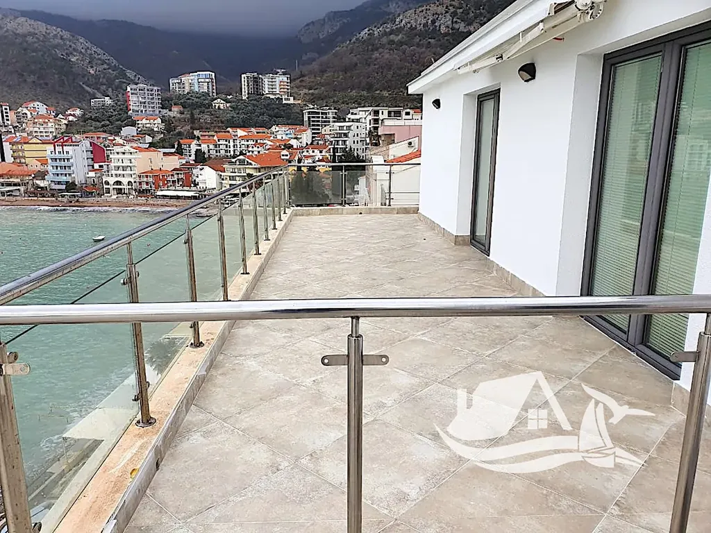 Apartmán o celkové ploše 142 m² nabízí velkorysé a funkční uspořádání. K dispozici jsou tři prostorné ložnice, jedna moderní koupelna, praktická šatna a velká terasa o rozloze 39 m². Z každého okna i terasy si můžete užívat nádherné výhledy na ikonické lokality, jako je ostrov Sveti Stefan, ostrov Sv. Nikola (známý také jako Školský ostrov), balkánské hory a pobřežní promenádu. Apartmán je plně vybaven moderními spotřebiči a kompletně zařízen, což umožňuje okamžité nastěhování.