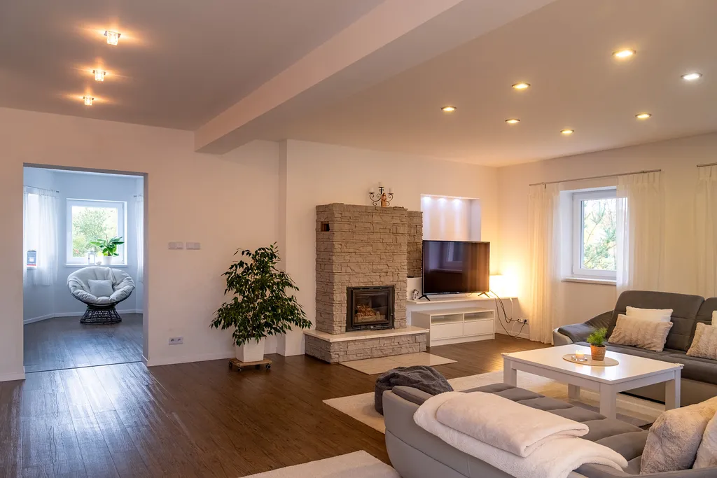 Dům byl navržen s důrazem na soukromí pro všechny členy domácnosti. Zároveň však nabízí prostory ke společně trávenému času ať už v jídelně při stolování, v kuchyni při vaření nebo relaxaci u plápolajícího krbu nebo na terase s výhledem na zahradu a okolní krajinu. Všechny prostory jsou vzdušné, plné světla.