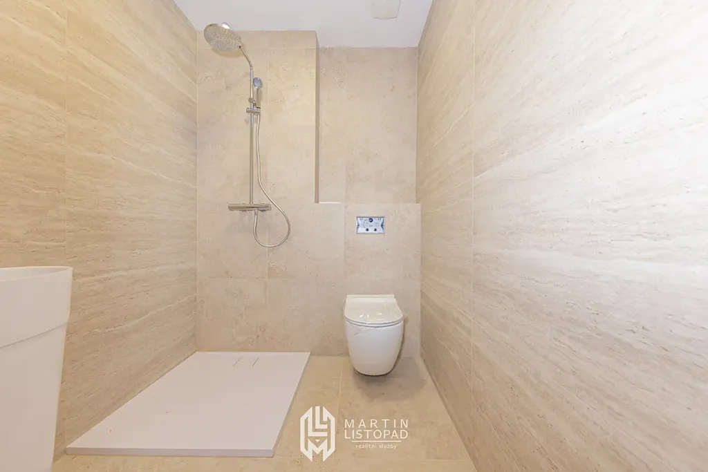 2.NP disponuje hlavní ložnici, která nabízí dostatek prostoru pro šatnu a disponuje vlastní koupelnou s vanou, bidetem a toaletou. Dále zde naleznete dva samostatné neprůchozí pokoje, z nichž jeden má přímý vstup na terasu a samostatnou koupelnu se sprchovým koutem a toaletou.