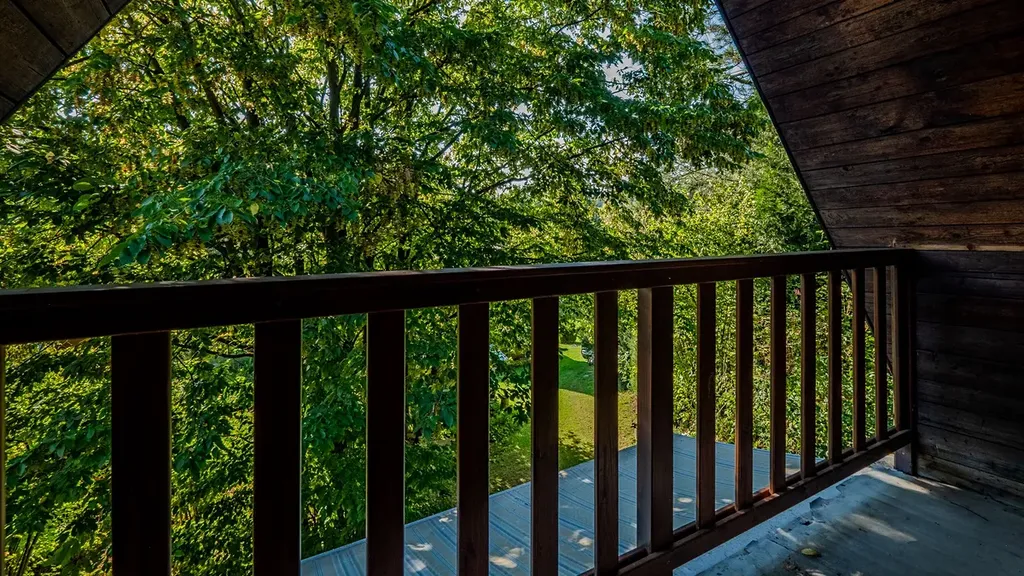 Už při vstupu vás přivítá velká terasa, která přímo vybízí k ranní kávě nebo večerním posezením s přáteli. V útulném obývacím pokoji si pak vychutnáte praskání ohně v kachlových kamnech. V přízemí je dále prostorná kuchyň a nová koupelna se sprchovým koutem a WC. Z obývacího pokoje se po dřevěných schodech dostanete do patra, kde na vás čekají dvě ložnice, každá s vlastním balkónem – ideální místo pro probuzení s výhledem do zeleně.