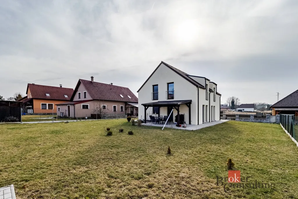 Dům o dispozici 4+kk je řešen jako dvoupodlažní a nabízí komfortní bydlení pro rodinu i rekreační využití. Stavba je provedena v moderním architektonickém stylu s důrazem na funkčnost a prostor.