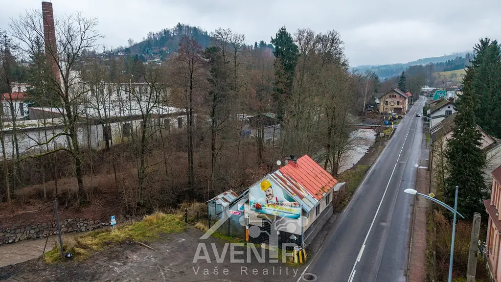 Nemovitost se nachází přímo na hlavní silnici a dává možnost zviditelnění vaší firmy nebo prodejny.