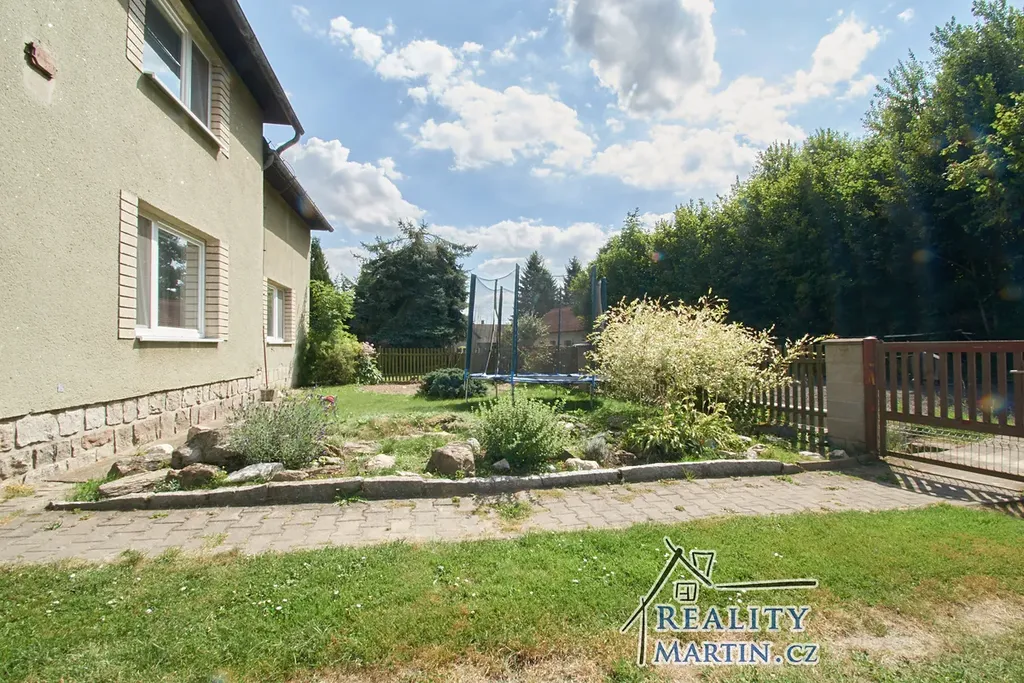 Celková výměra pozemku je 526 m². Součástí je také garáž pro dvě auta s dílnou.