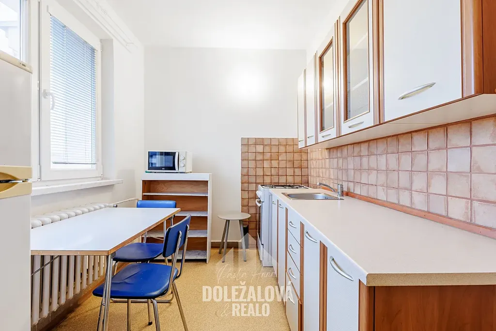 Velkou výhodou je prostorný betonový balkon, dostatek úložných prostor a sklep. Parkování je možné v okolí domu na rezidenční kartu (modrá zóna).