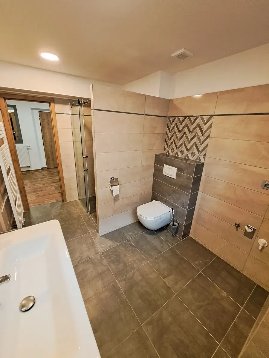 Bydlení pro velkou rodinu v prostorném, nedávno zrekonstruovaném bytě se zahradou nemusí být pouze přání - nabízíme částečně zařízený byt s dispozicí 4+kk o celkové ploše 104 m2 v přízemí rodinného domu (pouze 2 byty) v Mariánských Lázních, část Hamrníky, v ulici Potoční 165/21. Součástí bytu je mimo jiné balkón, dvě toalety, upravená zahrada a úložný prostor ve sklepě. Bezproblémové parkování před domem je samozřejmost a krásná příroda v bezprostředním okolí je v ceně :)