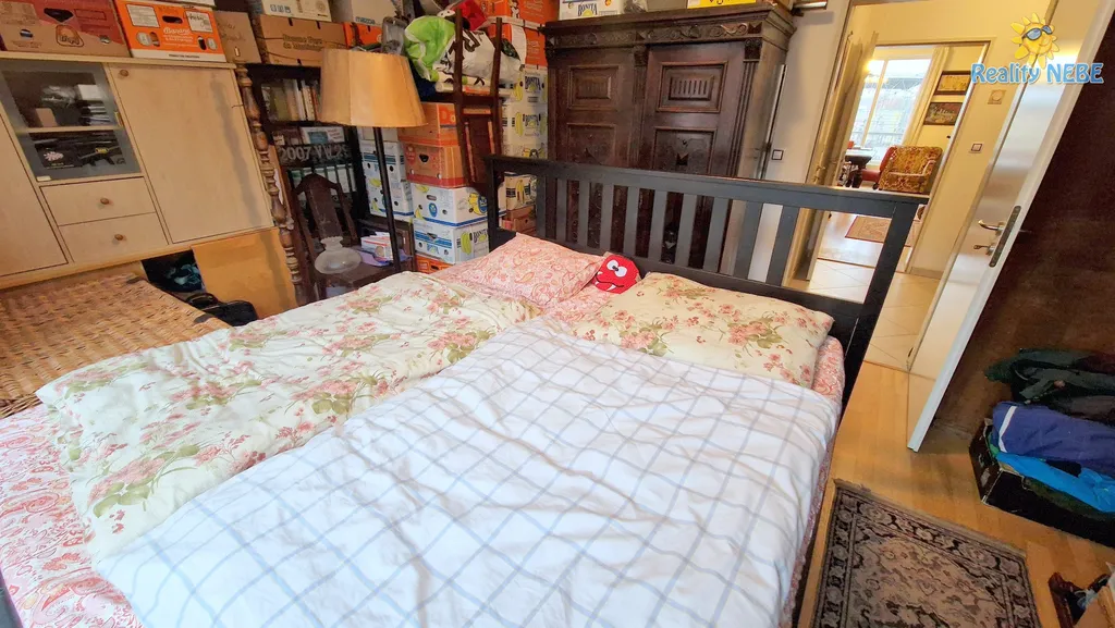 Byt se nachází v prvním patře s pěkným výhledem na Uhříněveský kostel. Skládá se z prostorného obývacího pokoje s kuchyňským koutem (32 m2), ložnice (19 m2), předsíně (5 m2), koupelny (5 m2), balkonu (5 m2) a sklepu (5 m2). Kuchyňská linka je s vestavěnými spotřebiči, elektrickou troubou, mikrovlnnou troubou a myčkou na nádobí. Ložnice je orientovaná na východ, obývací pokoj s balkonem na západ. V obou místnostech je velké třídílné francouzské okno.