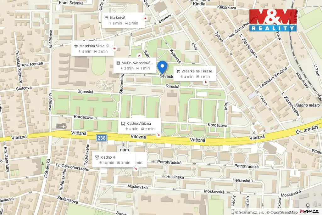 Pronájem bytu 1+kk, 35 m², Kladno, ul. Sevastopolská