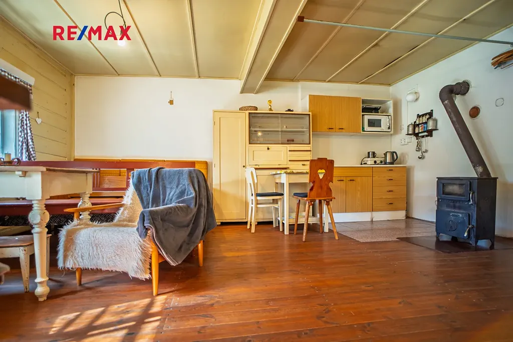 - Částečně roubená a částečně zděná chalupa stojí na zastavěné ploše 185 m² a je udržovaná, s prostorem pro citlivou rekonstrukci. Některé prvky už jsou vyřešeny – nová elektroinstalace, nová střecha nad roubenou částí a nová podlaha v hlavní obytné místnosti (světnici).