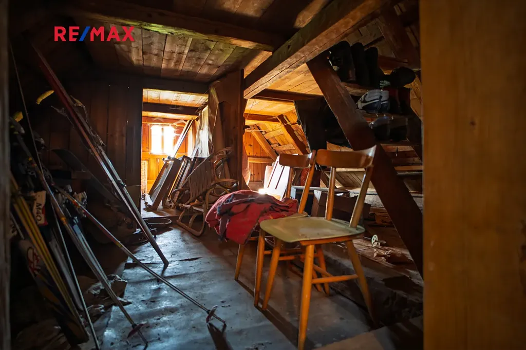 - Současná užitná plocha cca 127 m² zahrnuje světnici, pokoj, verandu, hospodářskou místnost, koupelnu, WC, spíž, lyžárnu, sklep a půdu.