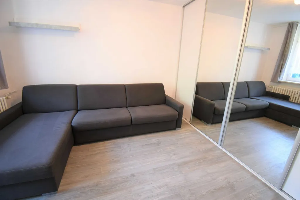 Byt se nabízí částečně vybavený. V kuchyni je plynový sporák s troubou, nádobí, myčka, digestoř, mikrovlnná trouba, lednice s mrazákem, stůl s židlí a sedačkou a spíž sloužící jako úložný prostor. V obývacím pokoji je velká sedačka, prostorná šatní skříň se zrcadlem, skříňka a police. V pokoji je postel, kancelářský stůl, skříňka s policemi a menší stolky. Koupelna je spojena se záchodem, nalezneme v ní vanu, pračku, umyvadlo, zrcadla a skříňky.