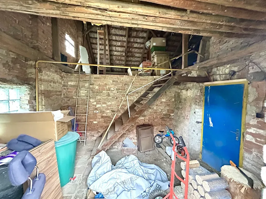 V podkroví: prostorná půda vhodná na půdní vestavbu 2-3 pokojů s koupelnou. Dobrý stav krovů.