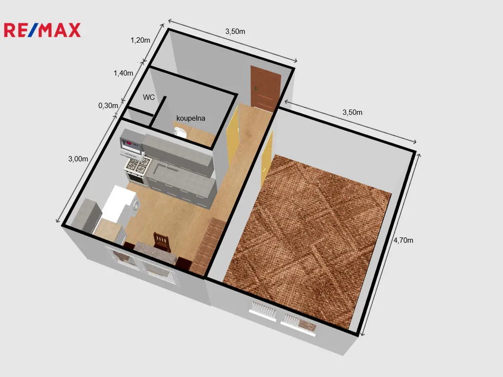 Samostatná kuchyň o velikosti 10,50 m² je plně vybavena a připravena k okamžitému používání – kuchyňská linka, sporák, lednice, pračka, televize, stůl se 3 židlemi, pohovky i část nádobí. Žádné další investice, vše už na vás čeká.