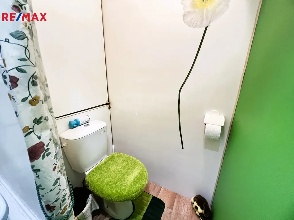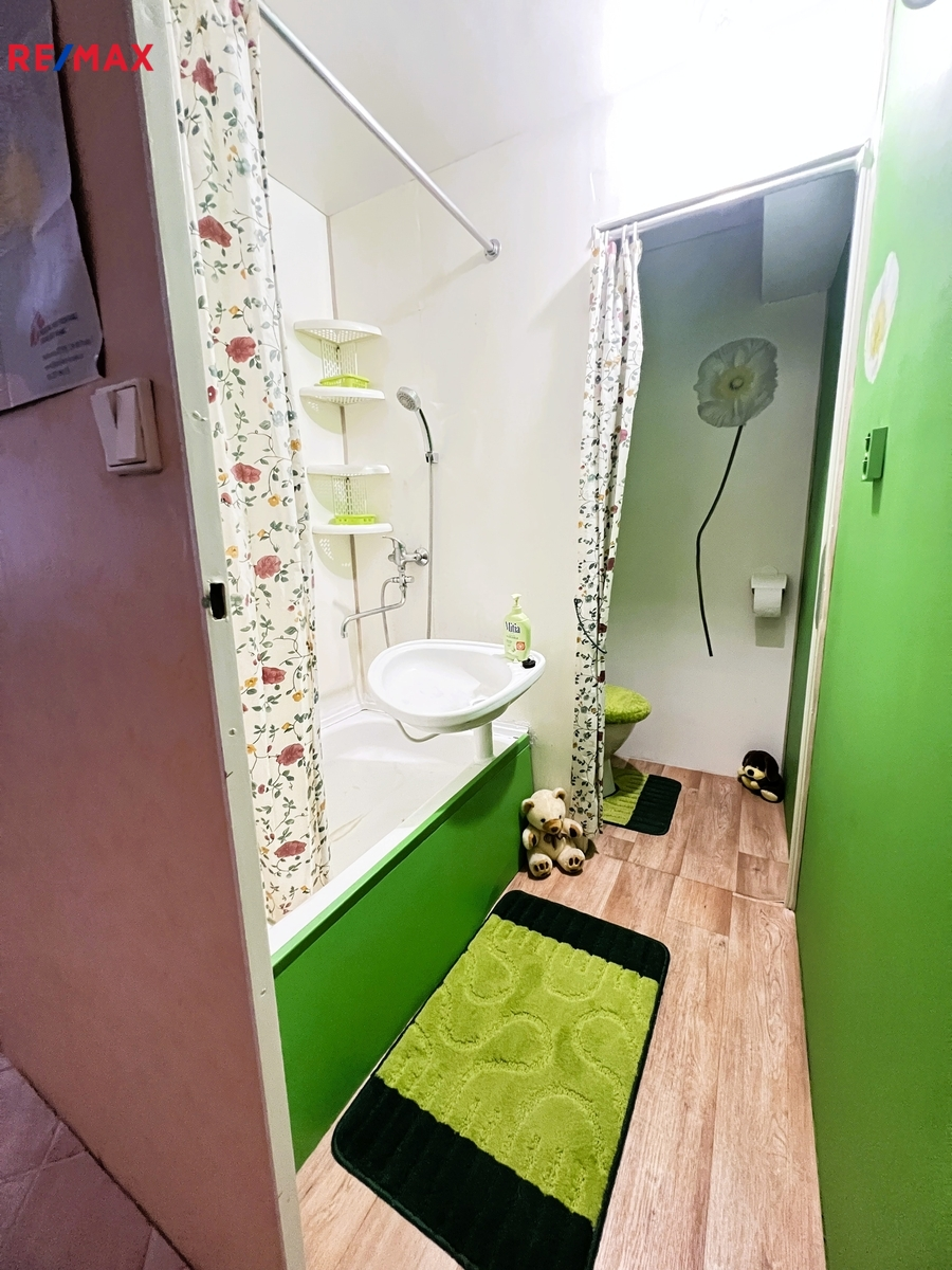 Sociální zázemí – koupelna - sprchový kout + WC. Na chodbě vestavné skříně, které poskytují nadstandardní úložný prostor. K bytu patří také sklepní kóje. K dispozici je balkón přes chodbu (není součástí bytu), dále kolárna a kočárkárna. Možnost pohodlného parkování přímo u domu (bez parkovacích zón).