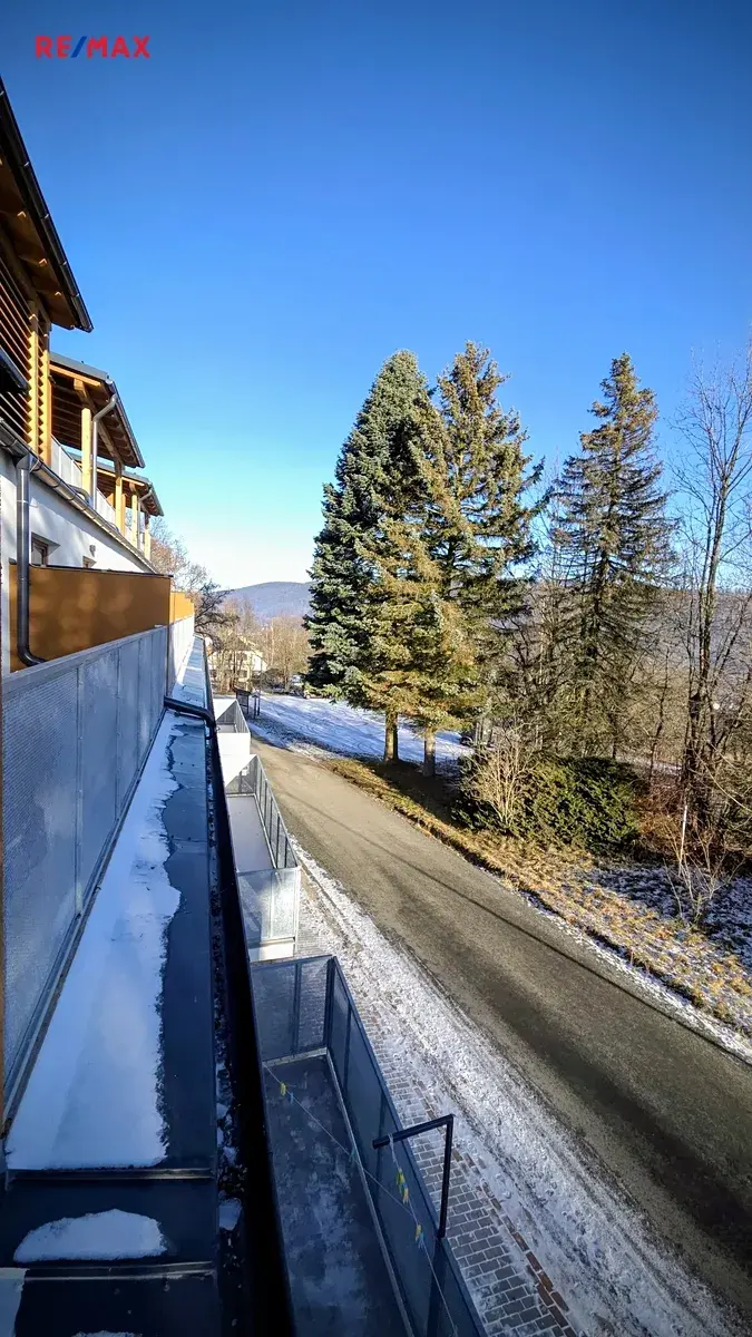 Součástí této nemovitosti je v ceně i sklepní kóje, společné prostory možné k využití jako lyžárna či wellness a parkovací plocha. V domě je výtah a dvě schodiště. Zavedena je i správa budovy včetně úklidu a odklízení sněhu.