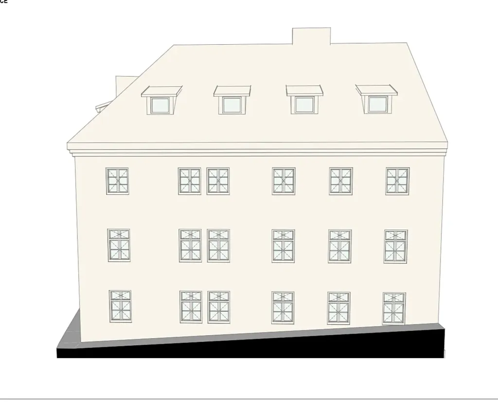 Jedná se o rohový bytový dům s nebytovými prostory v 1.NP a 1.PP, bytové jednotky ve 2.NP, 3.NP a v části podkroví. V 1.NP kavárna a zázemí (sklady, přípravna, WC). Ve vnitrobloku útulné posezení a krásný prostor.