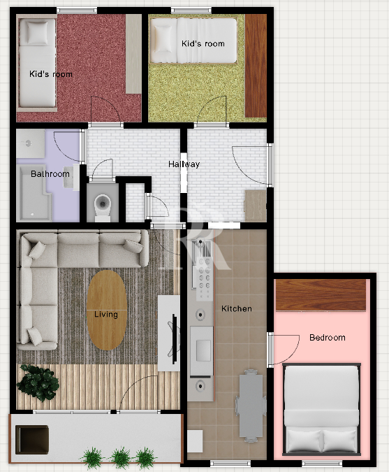 Velkorysá je již vstupní chodba, z níž jsou vstupy do jednotlivých neprůchozích pokojů.