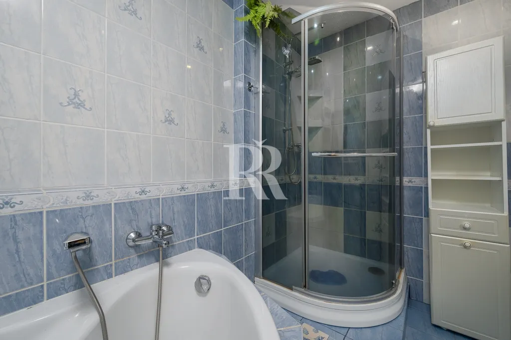 Velmi pěkná je koupelna, která je vybavena jak sprchovým koutem, tak i rohovou vanou. Jistě uvítáte samostatné WC.