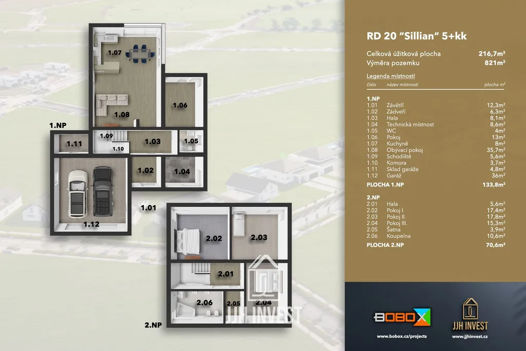 Nabízíme největší dům v projektu – rodinný dům s dispozicí 5+kk, užitnou plochou 216,7 m², dvougaráží a prostornou terasou. Ideální volba pro větší rodinu nebo klienty, kteří chtějí nadstandardní prostor.