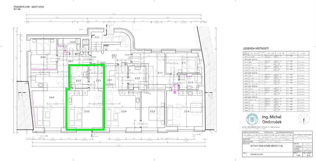 Byt je umístěn ve 2. nadzemním podlaží třípodlažní cihlové novostavby s energetickou třídou B – velmi úsporná.