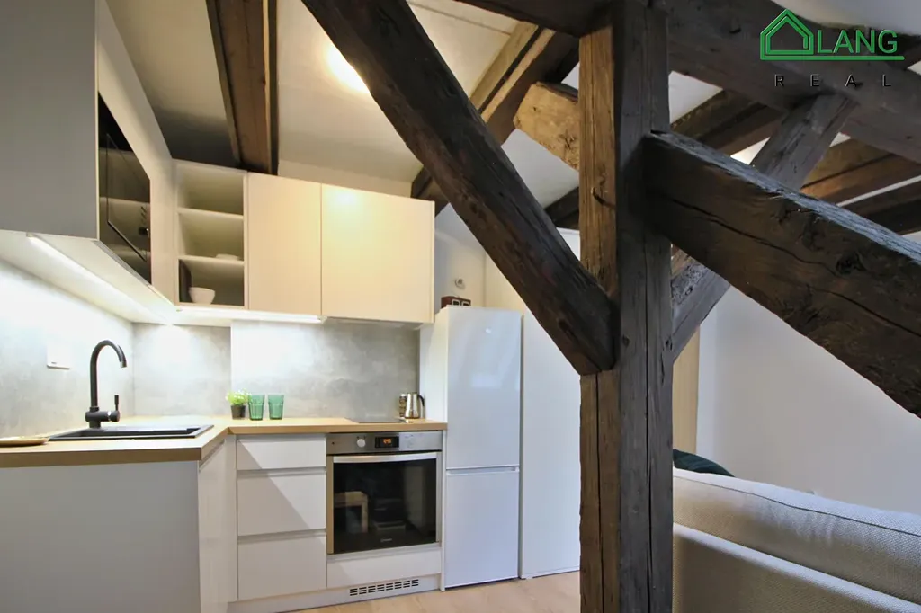 Nabízíme k pronájmu útulný a světlý půdní byt 1+kk o velikosti 27,6 m² ve 3. patře v domě Francouzská.