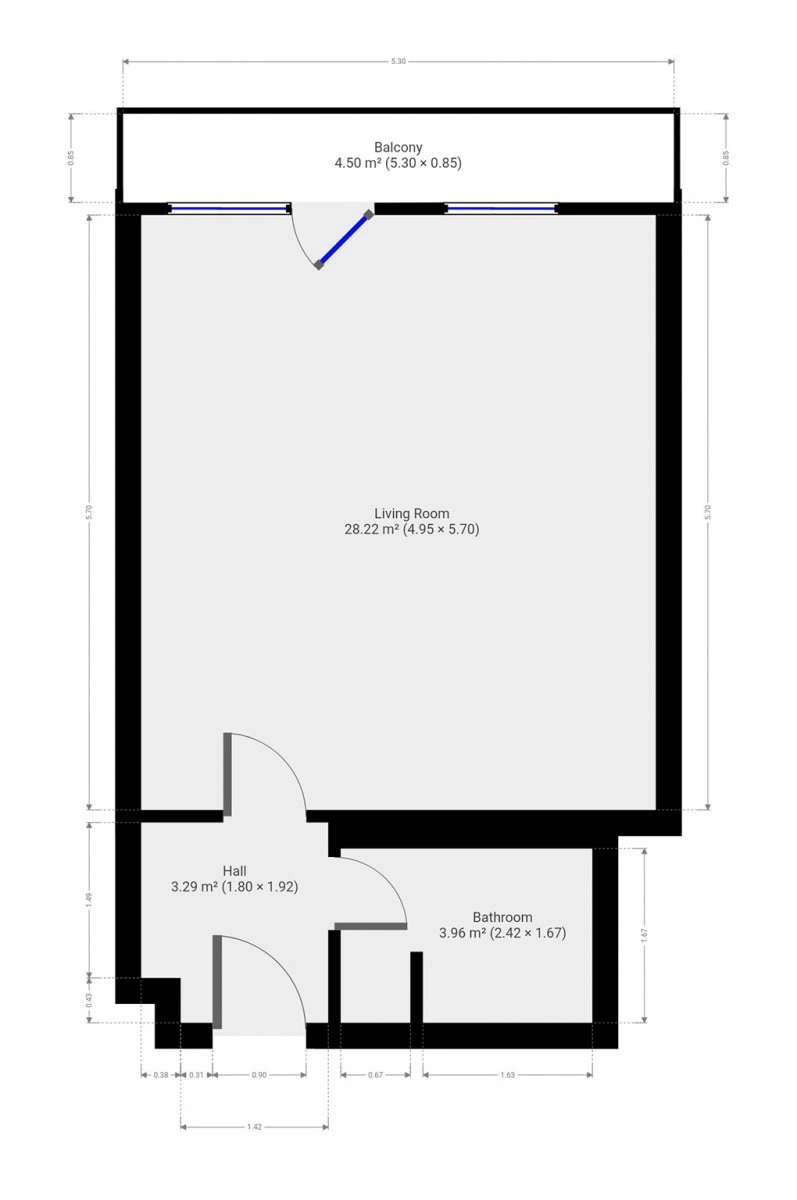Byt se nabízí nevybavený. Kuchyně disponuje lednicí, elektrickou troubou, varnou deskou a digestoří. Obývací část je nezařízená. V koupelně najdeme vanu, umyvadlo a toaletu. Součástí předsíně je šatní skříň.