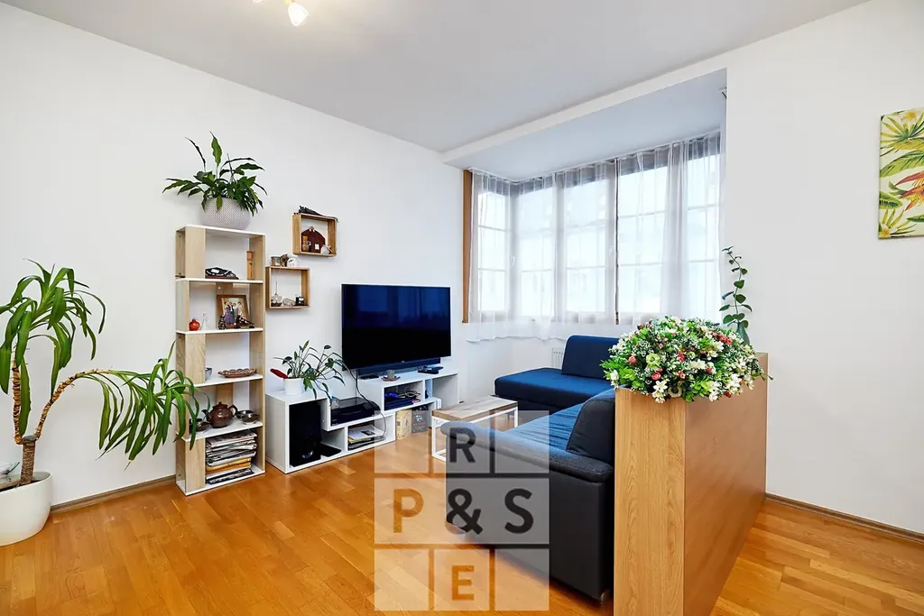 Dispozice zahrnuje prostorný obývací pokoj s jídelní částí a plně vybaveným kuchyňským koutem (vestavěné spotřebiče), komfortní ložnici, koupelnu s vanou, samostatnou toaletu a předsíň s dostatkem úložných prostor. Vysoké stropy bytu dodávají vzdušnost a příjemnou atmosféru, která podtrhuje jeho nadstandardní charakter. Masivní dubové podlahy jsou položeny ve všech obytných místnostech, koupelna a WC jsou provedeny v dlažbě. Byt je ideální pro pár, který hledá moderní a pohodlné bydlení.
