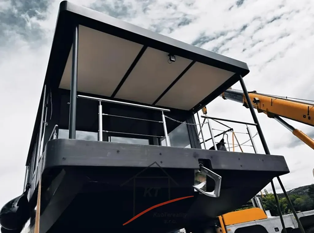 Nabízíme vám kompletně zařízený Houseboat o výměře 140 m2, který poskytuje pocit bydlení na vodě pro rekreační účely. Výroba probíhá v loděnici pod dohledem mezinárodně uznávaných kontrolních institucí (Lloyd's Register of Shipping, Germanische Lloyd a Bureau Veritas). Ocelové části jsou buď z nerezové oceli AISI316, nebo žárově pozinkované oceli. Stavby jsou navrženy v souladu s místními povětrnostními, vodními a zimními vlivy. Nejprve je stavba postavena ve výrobní hale Loděnice Barkmet a pak následně dopravena do místa kotviště. Základní výbava plovoucího domu obsahuje hlavní motor (Allpa, Vetus), dokormidlovací zařízení, kotva a kotevní systémy (dalby), nádrže - pitná voda, palivová a fekální nádrž a balastní nádrže (vyvážení trupu). Plovoucí dům je vybaven nejnovějšími technologiemi pro zajištění energetické účinnosti. Inteligentní vybavení systému pro úsporu energie a technologií umožňuje dosáhnout až LEED hodnocení. Energeticky/efektivní izolace a okna s trojsklem jsou standardní řešení. Dům je vybaven slunečními kolektory, které vyrábí teplou vodu pro domácnost, ve slunném období nabízí velmi nízkou spotřebou energie. O vytápění domu se vám postarají ekonomické sálavé infra panely s nastavitelným termostatem. Všechny tyto systémy a stavební materiály pomáhají šetřit Vaše peníze i životní prostředí v dlouhodobém horizontu. Rozměry - délka - 17m, šířka- 8,2m (ocel, povrchová úprava lodní barvou HEMPL). Technické parametry a vybavení: naftový motor Solé Diesel Allpa 35 HP, Elektro 220W, přední dokormidlovací zařízení, kotevní elektrický naviják, WC s lodním panelem (lodní fekální nádrž), sprcha, boiler, cisterna na vodu 1000litrů (užitková voda a odpadní), balastní nádrže (vyvážení trupu)Vybavení - lednice, sporák indukční, mikrovlnka, alarmový systém střežení, moderní led osvětlení, elektrické vyhřívané podlahy+ vybasto (diesel. horko-vzdušní topení). Houseboat není závislý na elektro - břehové přípojce kvůli solárním panelům - velmi ekonomická spotřeba- funkčnost pří úplném vypnutí elektřiny (alarm zařízení, lednice, boiler, osvětlení ). Energeticky/efektivní izolace a okna s trojsklem jsou standardní řešení. Dům vybaven slunečními kolektory, které vyrábí teplotu vody pro domácnost, ve slunném období nabízí velmi nízkou spotřebu energie. O vytápění domu se vám postarají ekonomické sálavé infra panely s nastavitelným termostatem. Všechny tyto systémy a stavební materiály pomáhají šetřit Vaše peníze i životní prostředí v dlouhodobém horizontu. 4 místa na spaní, palubní terasa a patrová terasa s další možnosti využiti - vířivka, terasa na opalování, grilování. Při osobní prohlídce a i projížďce na vodě nejlépe posoudíte, zda je tento houseboat vhodný právě pro Vás. Nabízíme vám možnost financování naším smluvním partnerem. Pro více informací nebo sjednání prohlídky kontaktujte certifikovaného realitního makléře.