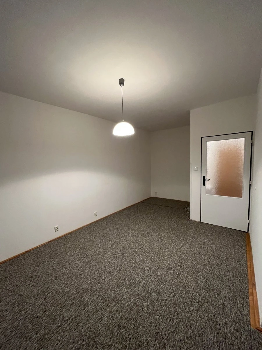 V obývacím pokoji jsou parkety a je zde možnost ponechat stávající nábytek (gauč, stolky), případně lze byt pronajmout bez zařízení. Ložnice je nezařízená, na podlaze je koberec pro větší komfort a z tohoto pokoje je vstup na zasklenou lodžii.