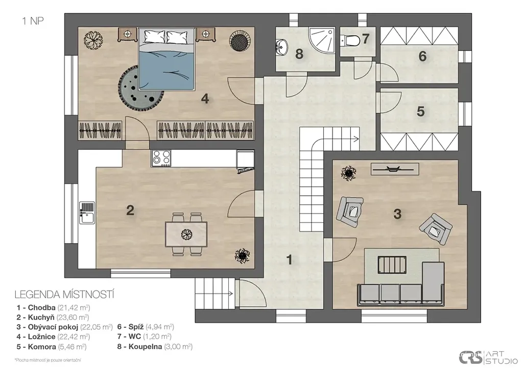 - dispoziční plány 1.NP a 2.NP jsou součástí inzerce