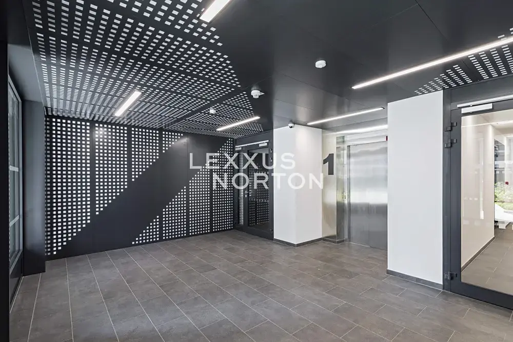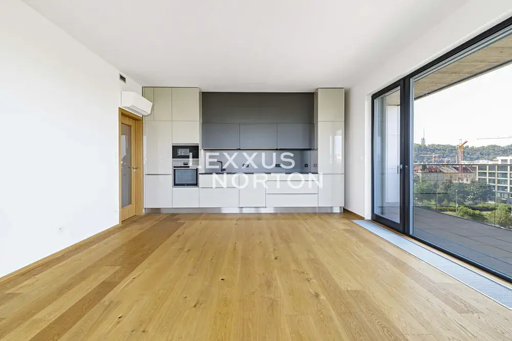 Byt se nabízí nezařízený a k součástí vybavení patří kuchyňské spotřebiče, klimatizace, předokenní žaluzie, rekuperace, podlahové topení, videotelefon, pračka, sušička, vestavěné skříně a dřevěné podlahy.