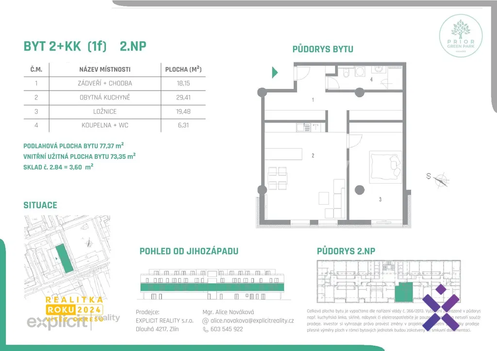 Mgr. Alice Nováková & Explicit Reality nabízí možnost výběru z 37 bytových jednotek o dispozicích 1+kk, 2+kk a 3+kk v novém polyfunkčním domě PRIOR KROMĚŘÍŽ, který vzniká citlivou rekonstrukcí ikonické budovy na Slovanském náměstí. Projekt spojuje výbornou městskou adresu s klidným bydlením. Část bytů je orientována do přilehlého parku, což zajišťuje příjemný výhled i dostatek soukromí.