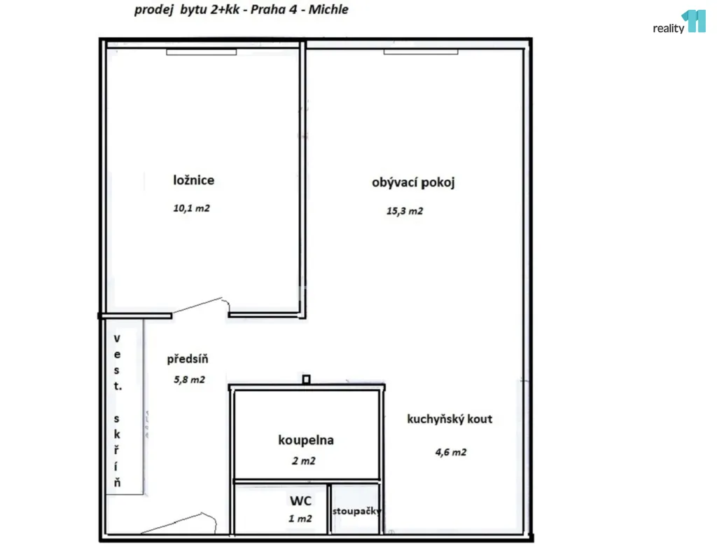 Prodáme klidný byt o velikosti 2+kk, 40 m², v osobním vlastnictví, umístěný ve 4. poschodí domu situovaného v panelové zástavbě z šedesátých let v Praze 4, v blízkosti stanice metra Budějovická. Okna bytu jsou orientována na jihovýchod. Jednotlivé budovy celkové zástavby jsou od sebe odděleny dostatečným prostorem zeleně se vzrostlými stromy. Byt je rozčleněn na obývací pokoj (15,28 m²) s kuchyňským koutem (4,56 m²), ložnici (10,09 m²), předsíň (5,80 m²), koupelnu (2,00 m²) a WC (1 m²). K bytu ještě náleží komora (1 m²) umístěná na chodbě domu vedle vchodu do bytu. Byt je ve velmi dobrém stavu. Kuchyňský kout je zařízen novou kuchyňskou linkou, která je vybavena plynovou varnou deskou, zabudovanou horkovzdušnou elektrickou troubou a myčkou. V koupelně je menší vana a umyvadlo se skříňkou, v předsíni třídílná vestavěná skříň. V bytě je plovoucí podlaha, okna plastová, opatřená žaluziemi a vnějšími roletami, obojí na dálkové ovládání. V koupelně a na WC je dlažba a obklady. V současné době je byt vyklizený. Dům je zateplený - úsporná energetická náročnost budovy a vstup do domu je bezbariérový. Současná výše měsíčních poplatků činí 3.124 Kč, poplatky za plyn a elektřinu pro jednu osobu činí cca 1.000 Kč za měsíc. Jedná se o atraktivní lokalitu umístěnou v širším centru, přesto v klidné části, s výbornou dostupností MHD, spojením do centra (metro, BUS) i výjezdy z Prahy všemi směry, plná občanská vybavenost. Parkování je v ulicích v okolí domů. Neplatíte provizi. Ev. číslo: 27959.