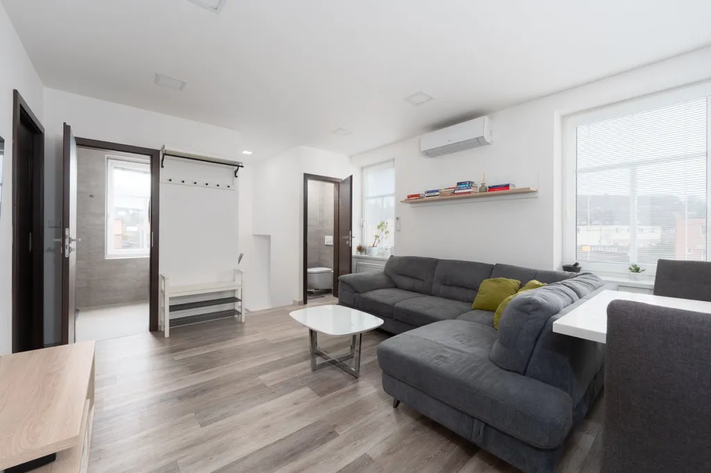 Velkým benefitem bytu je vysoce výkonná klimatizace značky Fujitsu, která umožňuje nejen