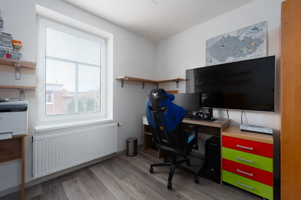 Byt nabízí dva samostatné pokoje, které lze využít jako ložnici a dětský pokoj či pracovnu.