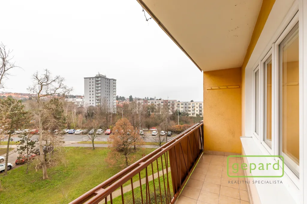 Interiér tvoří světlý obývací pokoj, samostatná kuchyně, dva neprůchozí pokoje, koupelna s vanou a samostatná toaleta. Příjemným benefitem je lodžie o velikosti 6 m², ideální pro ranní kávu či večerní odpočinek, a také sklepní kóje o velikosti 3 m², která poskytuje praktický úložný prostor.