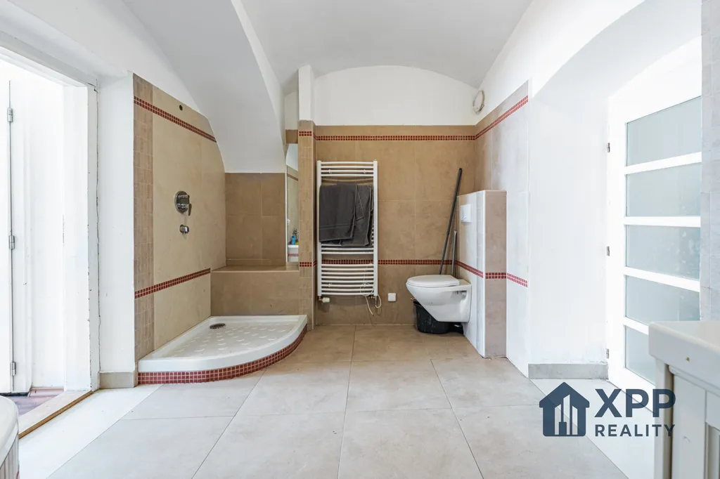 V přízemí se nachází bytová jednotka o dispozici 2+1 a výměře cca 80 m². Součástí bytu je prostorná koupelna, druhá menší koupelna, dvě samostatné toalety a technická místnost. Byt je v současné době pronajímán za 14 500 Kč měsíčně + náklady na energie. Dispozice umožňuje případné rozdělení na dvě menší bytové jednotky nebo komerční prostory, čímž lze navýšit výnos z pronájmu.