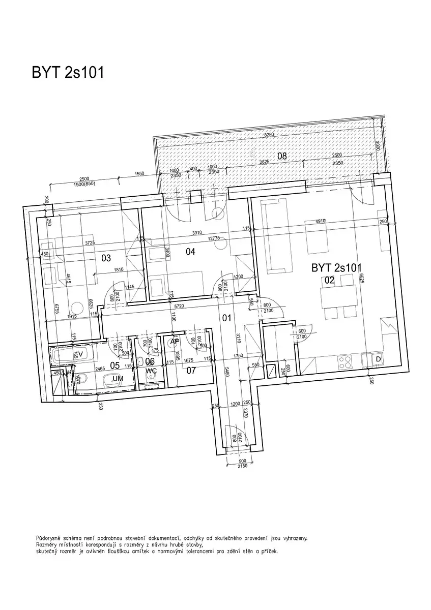 Byt má dispozici 3+kk, nachází se v 2.NP v novostavbě u lesa, v klidné lokalitě Městské části Brno – Jehnice, v areálu bývalého Pivovaru, a s výbornou dostupností veškerých služeb. Jednotku tvoří dvě oddělené místnosti, obývací pokoj s kuchyní, spíž s policemi, komora s policemi, kde je umístěna pračka a sušička, WC a koupelna. V kuchyni je jídelní stůl se židlemi a vybavená linka – lednička s mrazničkou, myčka, el. trouba a el. varná deska, mikrovlnná trouba, digestoř a dřez. Jednotka je dále vybavena pohodlným gaučem, konferenčním stolem, TV závěsnou skříňkou, manželskou postelí s matrací a vestavěnými skříněmi v ložnici a chodbě. Koupelna nabízí vanu, záchod a umyvadlo se zrcadlem. Součástí bytu je internetové připojení, klimatizace, AV vrátný. Součástí bytové jednotky je balkón o rozloze 17,40 m2, sklep o velikosti 3,50 m2 a dvě parkovací stání. Byt má venkovní lamelové žaluzie na el. ovládání. Byt je pronajat na dobu určitou - do 8/2026