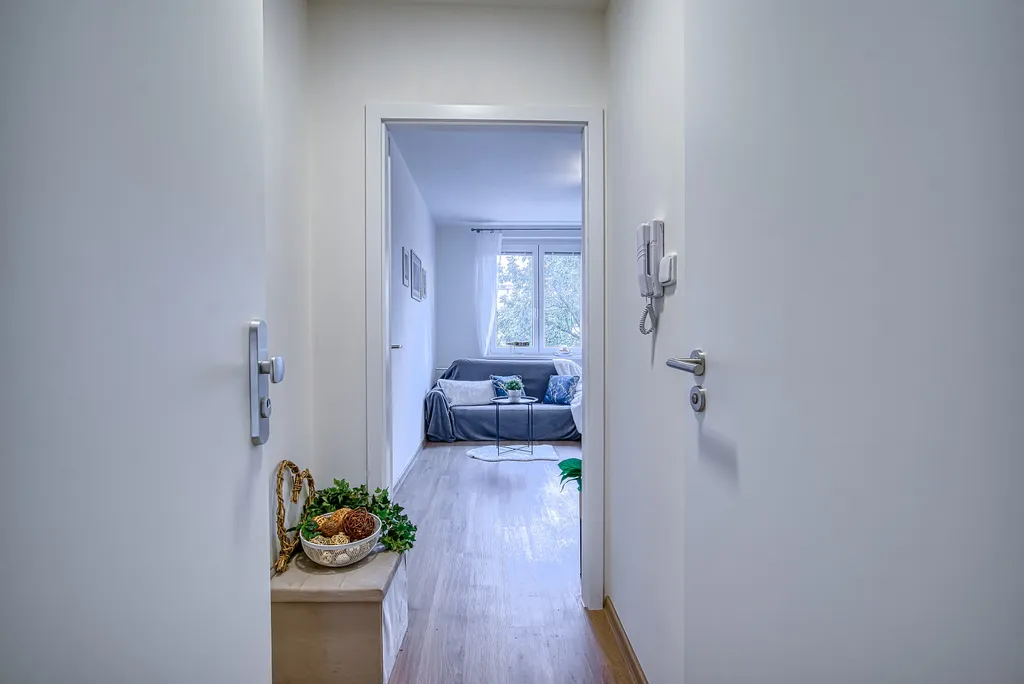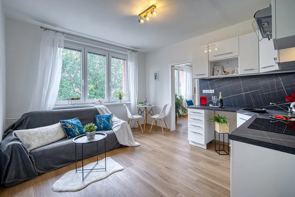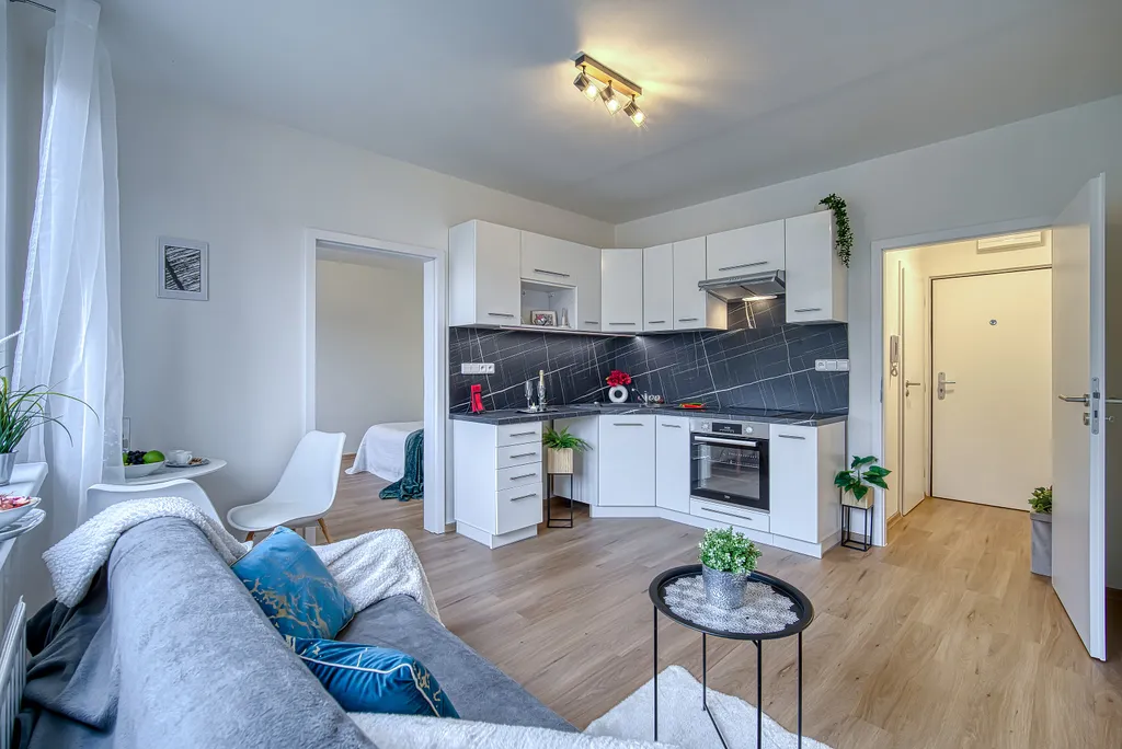 Nabízíme k pronájmu krásný byt 1+1, po kompletní rekonstrukci z roku 2024. Byt se nachází ve 3 nadzemním podlaží (2. patře) panelového domu s výtahem a disponuje novou kuchyňskou linkou se sklokeramickou varnou deskou, elektrickou pečící troubou a digestoří, dále je zde přívod na pračku. V koupelně se nachází sprchový kout, skříňka se zrcadlem, umyvadlo se skříňkou a závěsné WC. Součástí pronájmu je i sklepní kóje ve společných prostorách domu. Byt není vybaven nábytkem. Nájemné zde činí 10 500,- Kč/měsíčně, poplatky 1 900,- Kč na jednu osobu, každá další osoba 300,- Kč/měsíčně. Elektřina se přepisuje na nájemce. Vratná kauce činí 15 000,- Kč. Při rezervaci se platí provize realitní kanceláři ve výši 13 000,- Kč. Byt je volný od 01.02.2026. V případě zájmu o prohlídku či více informací neváhejte kontaktovat makléře.