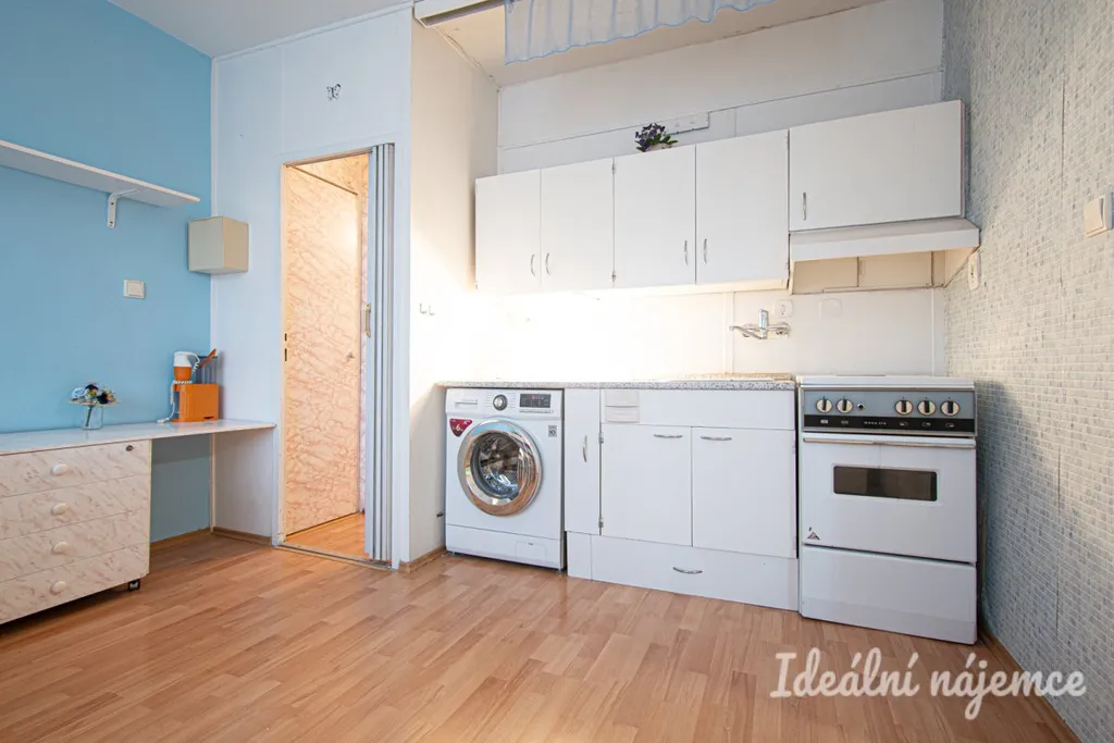 Byt se nabízí vybavený. Kuchyně disponuje lednicí, pračkou, troubou, digestoří a jídelním stolem se židlemi. Druhá místnost je vybavena skříněmi s dostatkem úložného prostoru, sedací soupravou a postelí. V koupelně je vana, umyvadlo a toaleta.