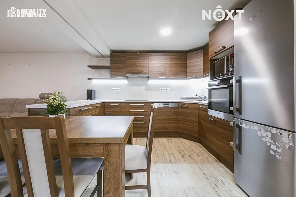 Kuchyň je vybavena indukční varnou deskou, troubou, myčkou nádobí a digestoří.