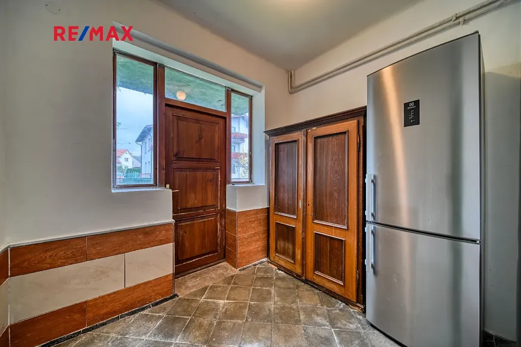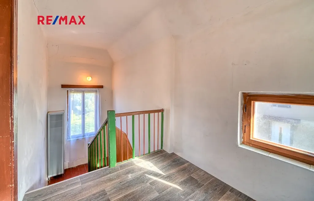 Schodiště i interiérové dveře jsou původní dřevěné a zachovávají autentický charakter domu.