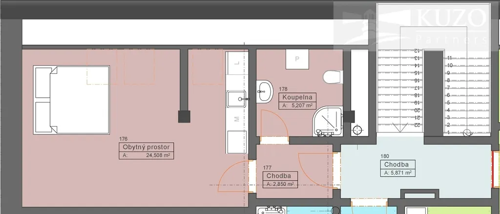 (k dispozici také byt byt č. 9 – dispozice 2+kk (42,83 m2) a další.)
