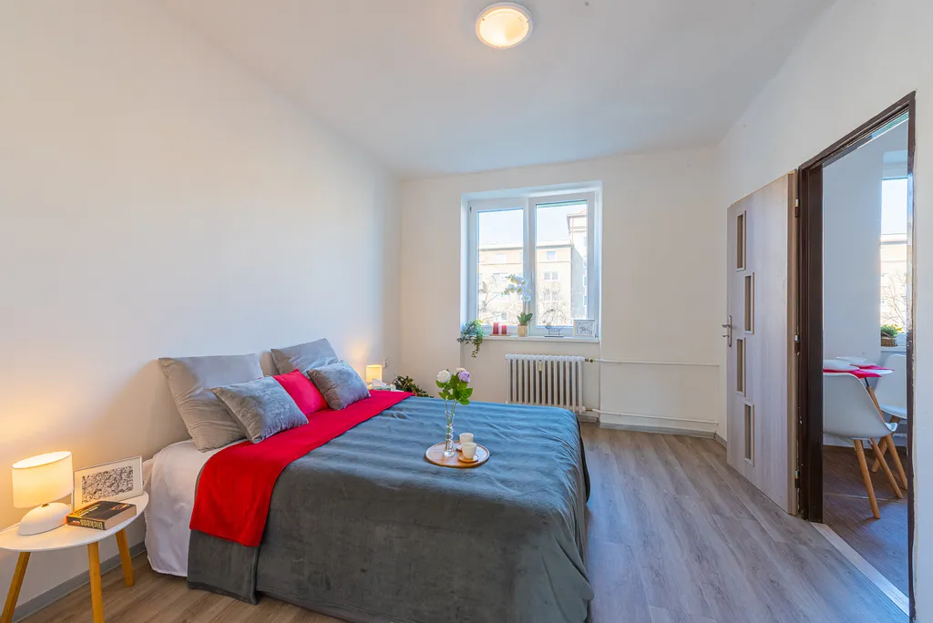 Nabízíme k pronájmu krásný byt 2+1 po částečné rekonstrukci. Byt se nachází ve 2 nadzemním podlaží (1. patře) panelového domu s výtahem a skládá se z obývacího pokoje, ložnice, kuchyně, chodby a koupelny s WC. Kuchyň disponuje kuchyňskou linkou s elektrickou varnou deskou a elektrickou pečící troubou. V předsíni jsou vestavěné úložné prostory – skříňky, věšáky na kabáty a botník s výsuvnými policemi. Mimo uvedené není byt vybaven nábytkem. Nájemné zde činí 9 500,- Kč, poplatky 2 000,- Kč pro 1 osobu + 500,- Kč každá další osoba. Vratná kauce činí 15 000,- Kč. Při rezervaci se platí provize realitní kanceláři ve výši 11 500,- Kč. Elektřina se přepisuje na nájemce. Byt bude volný od 1.3.2026. V případě zájmu o prohlídku či více informací neváhejte kontaktovat makléře.