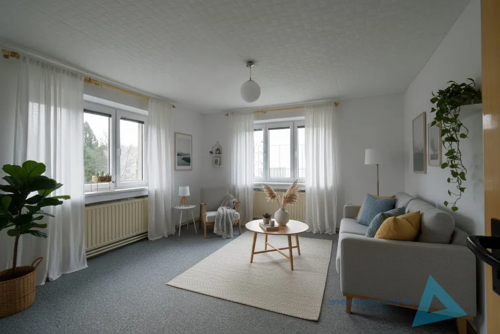 Upozornění: Úvodní fotografie interiéru byly doplněny o vybavení pomocí umělé inteligence (AI) pro lepší představu o dispozičním řešení.